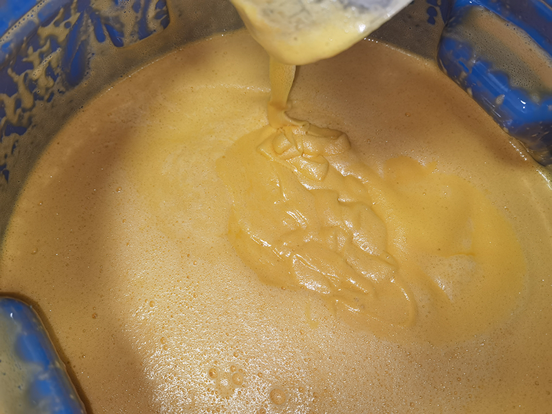 The remarkable contrast of the shampoo after defoaming is evident. The treated material displays a smooth surface with a lustrous sheen and is entirely bubble-free .